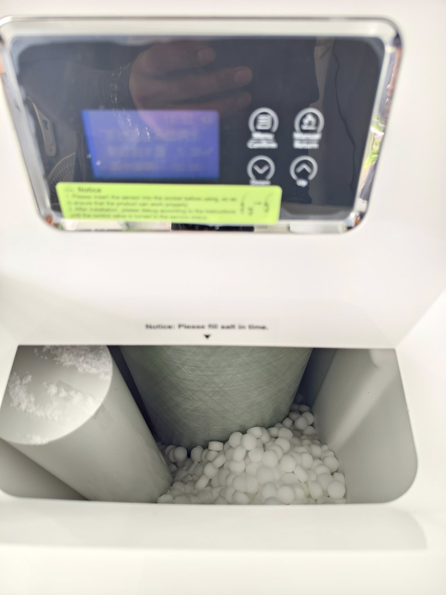 鹽箱補充經過處理後的軟水,軟水再生、省鹽省水。